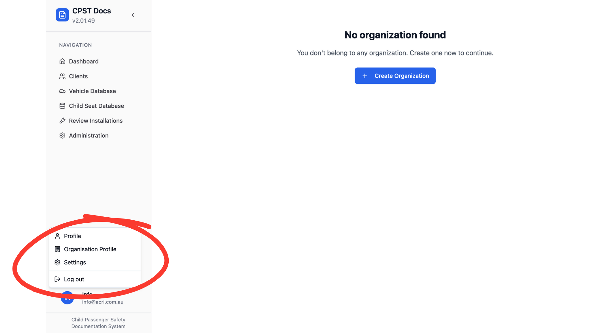Select “Organisation Profile.”